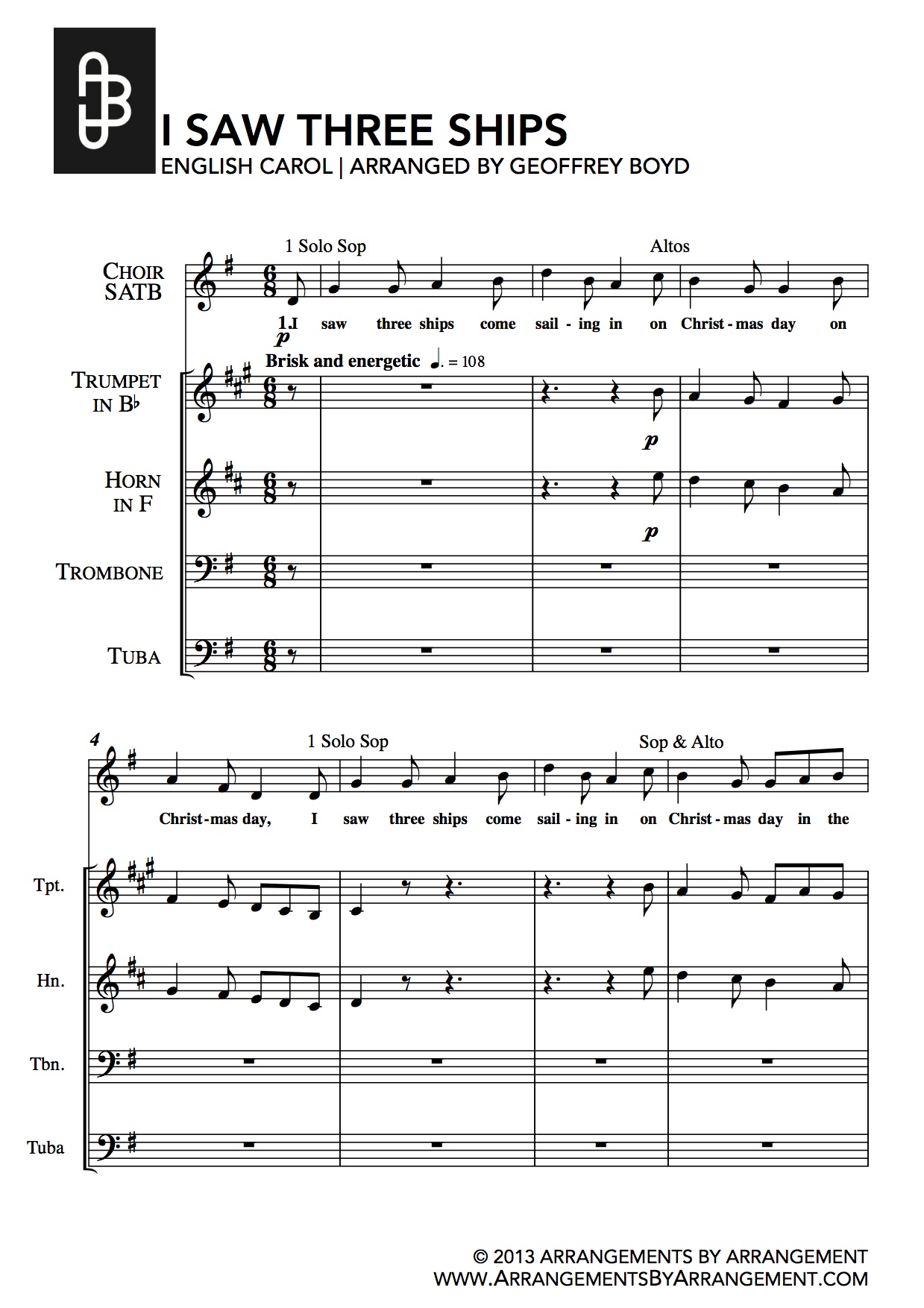 Arrangement for Choir and Brass Quartet of the English 17th Century Christmas carol.