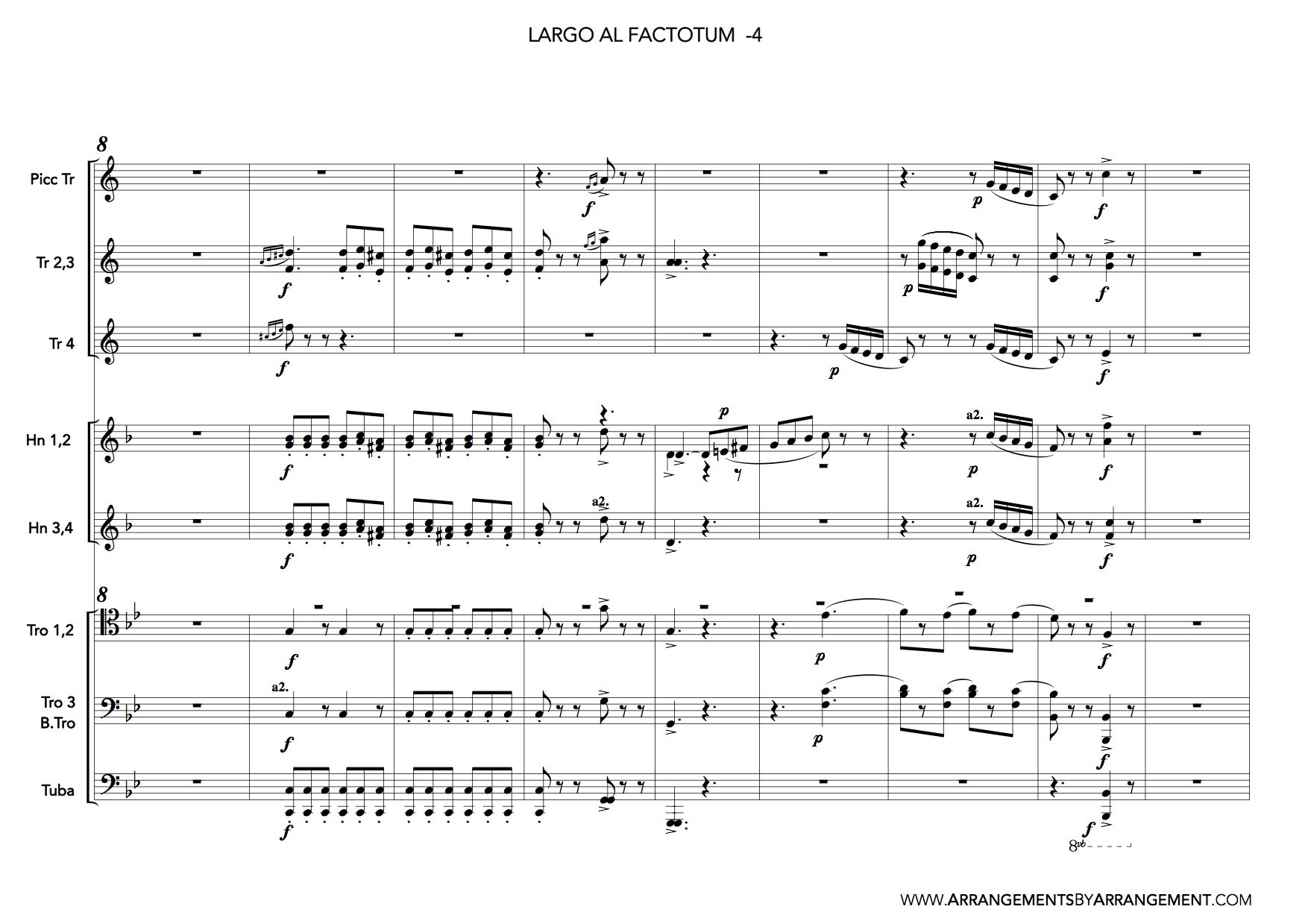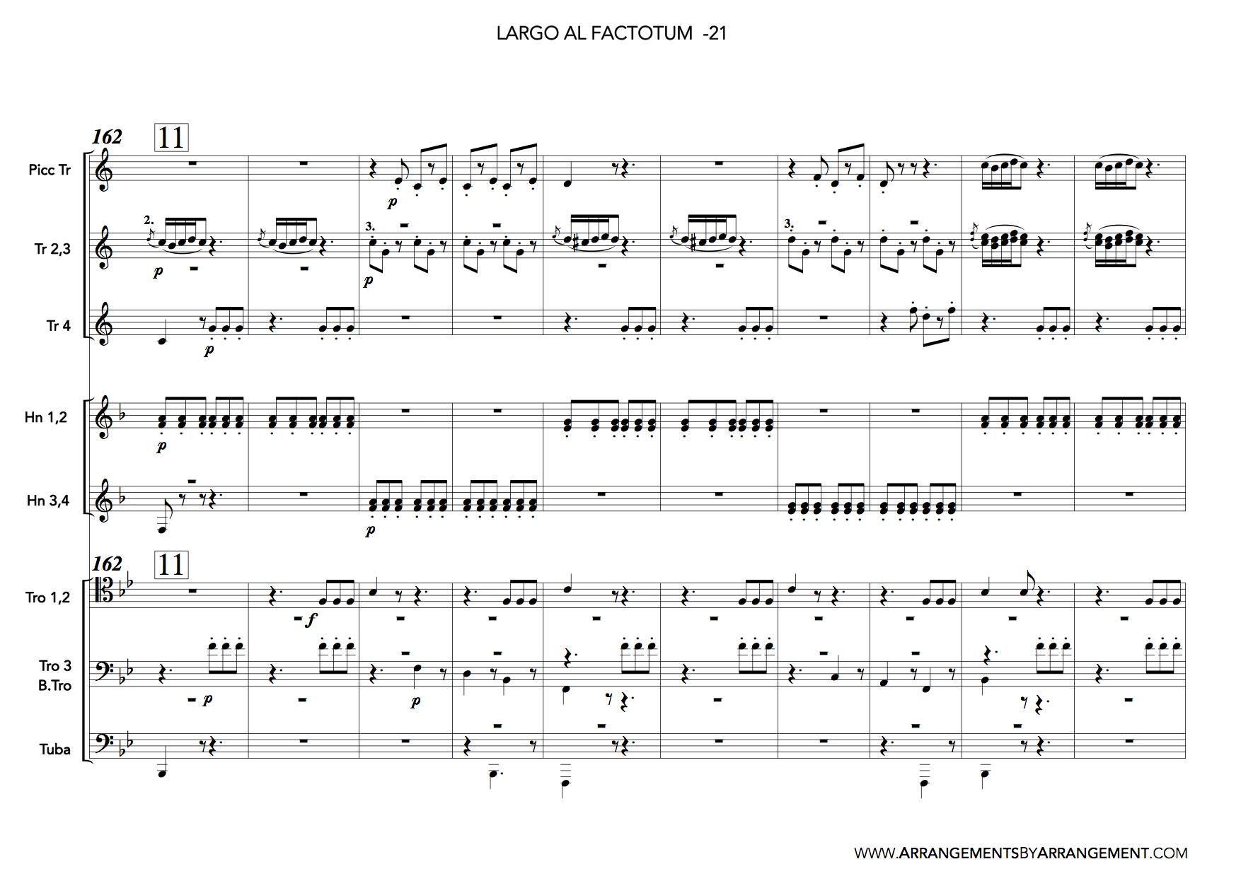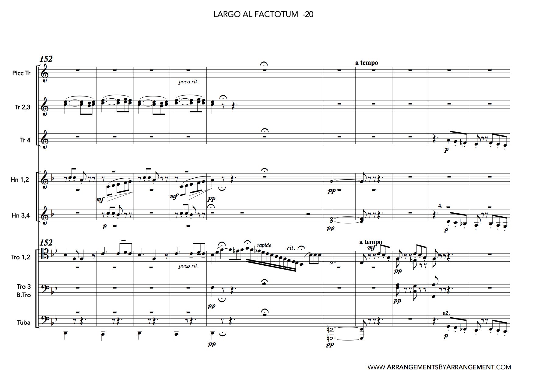 Arrangement of Figaro’s aria ‘Largo al factotum’ from Rossini’s opera The Barber of Seville as a Trombone Solo with large Brass Ensemble